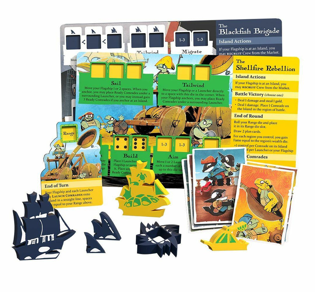 Avast, new ships sighted! And...turtles flying through the air? Whats all this?! This expansion adds two new factions to Ahoy. You can use them in place of the Bluefin Squadron and Mollusk Union from the core game, or add them all together in a two-versus-two team mode.