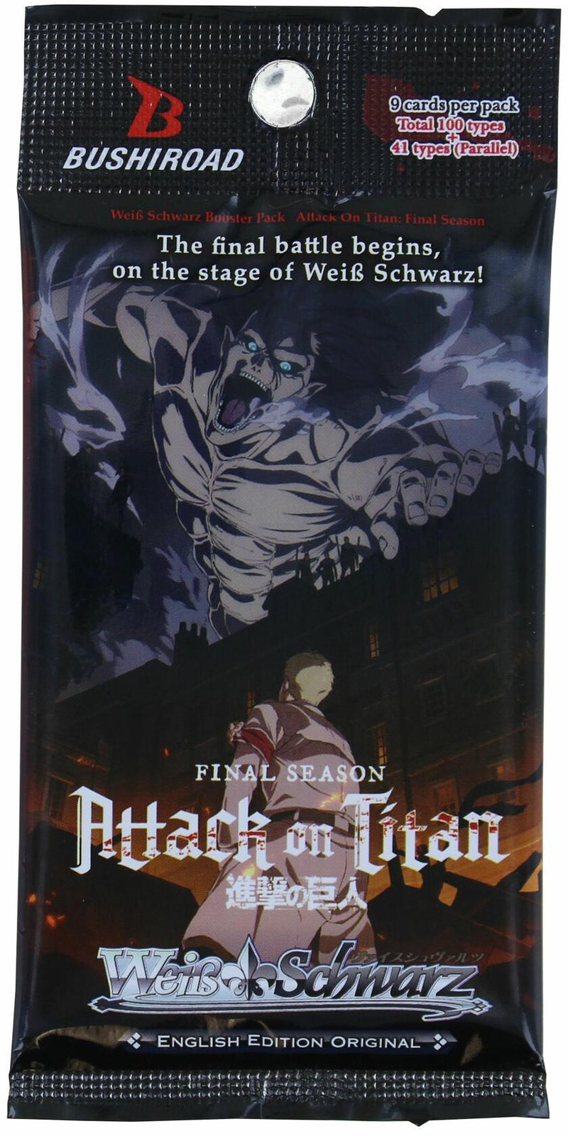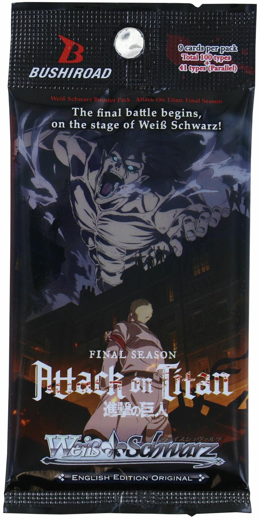 What is freedom? Will Eren ever be truly free? Join Eren in the final battle on the stage of Weiß Schwarz! Attack On Titan: Final Season is rumbling in to Weiß Schwarz as an English Edition Original!