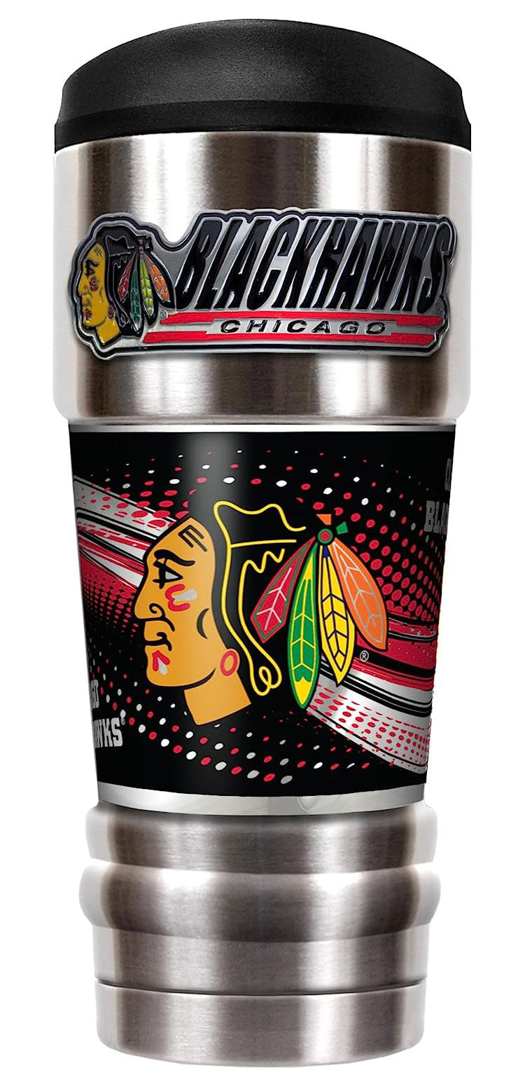 The MVP Travel Tumbler holds 18 oz. of your favorite hot or cold beverage, and its Double-Wall Vacuum Insulated 18/8 Kitchen Grade Stainless Steel construction means it keeps your drink icy cold for up to 24 hours, and hot for up to 12 hours. Features a tight-fitting spill resistant lid, ergonomic grip, high-definition metallic graphics and a 3-dimensional hand crafted metal team emblem.