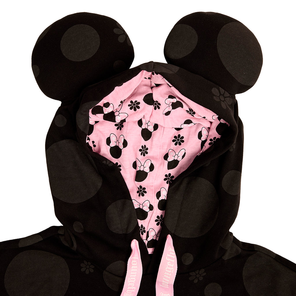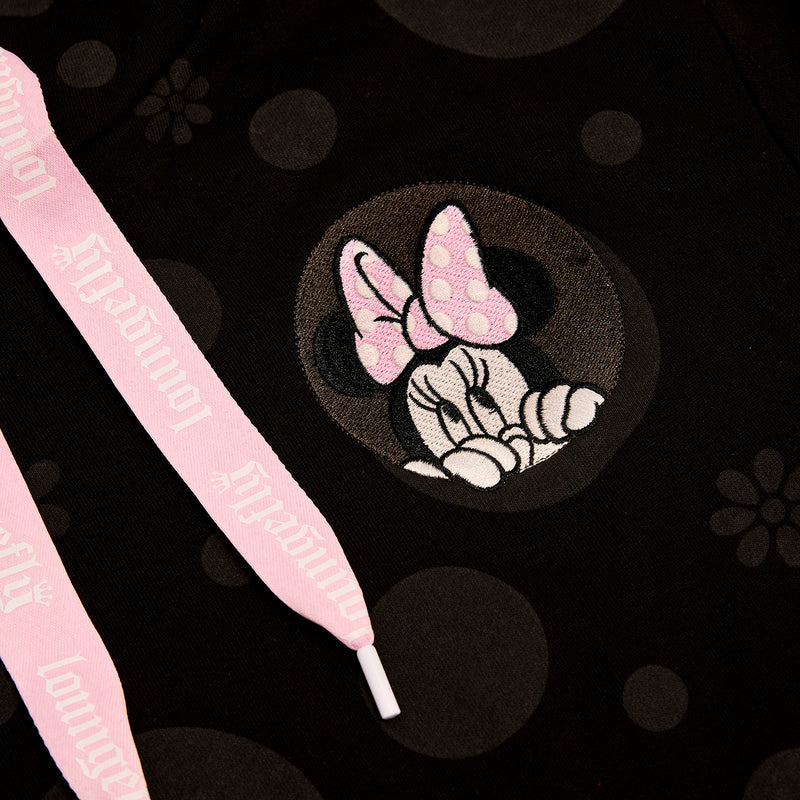•The Loungefly Disney Minnie Mouse Floral Rock The Dots Unisex Hoodie is made of 60% French Terry cotton and 40% Polyester.