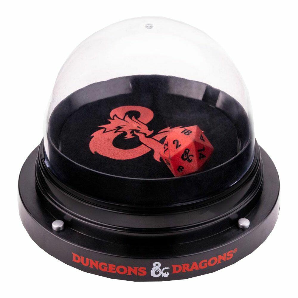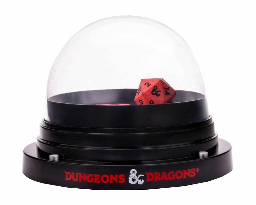 The D&D Orb of Possibility offers an exciting new way to roll! This battery-operated dice spinner works with the press of a button. The Orb of Possibility will spin your dice to determine your fate. Included is a red silicone D&D d20 for the bounciest rolls. The lid is removable, so you can roll with your dice of choice! Batteries included. Our dice roller is a wonderful way to include everyone in the fun. When you press to activate the dome, the plate inside will spin, rolling the die inside. The dice roller has a removable clear plastic top that provides access to the d20 inside, or feel free to use your own die!