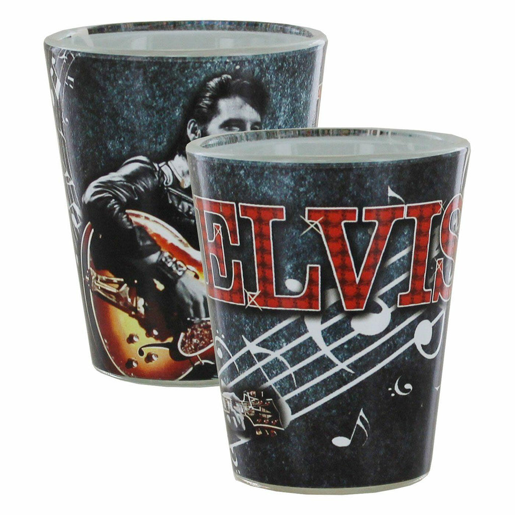 Toast to the king every time you take a sip with this officially licensed shot glass set from Mid-South products. This set of 3 shot glasses feature different graphics from the life and times of Elvis Presley. Do not microwave, handwash only!