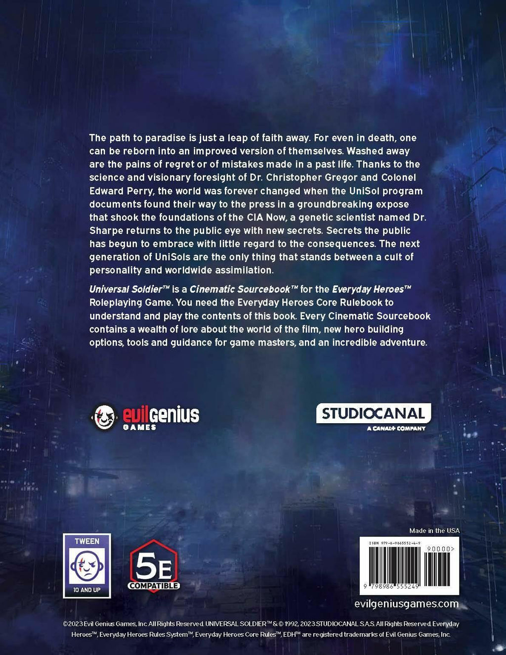 •EXPANSION RPG ADVENTURE: Universal Soldier is a Cinematic Adventure for use with the Everyday Heroes roleplaying game. You need the Everyday Heroes Core Rulebook to understand and play the contents of this book.