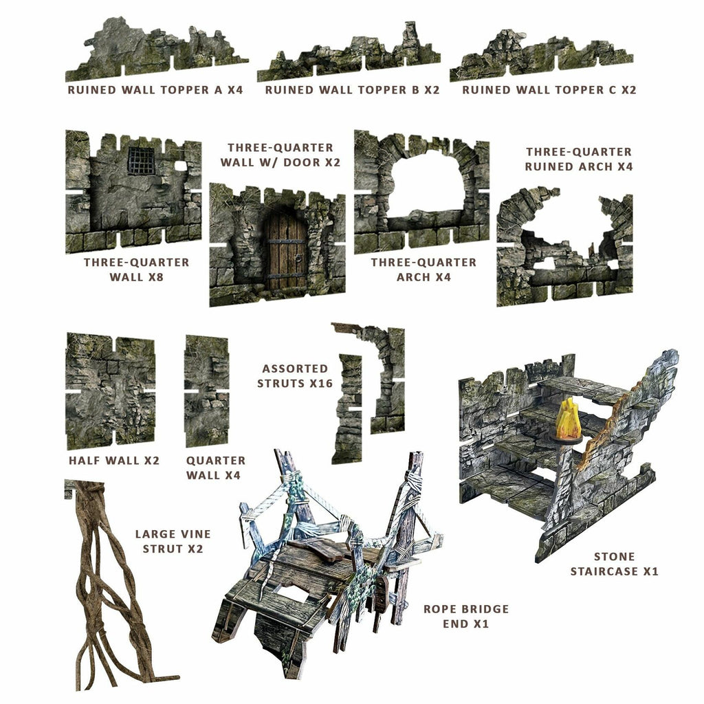 - This box contains all the terrain you need for a multi-level dungeon or castle ruin, suitable for many fantasy miniatures games and RPGs