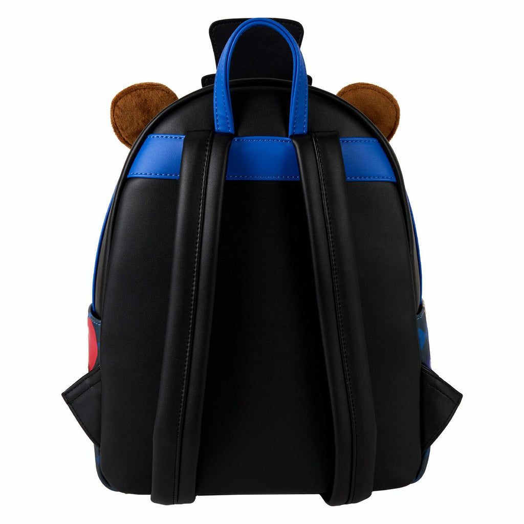 Can you make it 'til 6am?! Freddy Fazbear possesses this bag in plush and embroidered detail as he offers out a pizza to you. Feeling like someone's keeping an eye on you? Freddy's eyes follow your every move as they move from side to side with a lenticular feature. You can change his expression from friendly to sinister by moving his eyebrows. This bag is a celebration of all things Freddy Fazbear, from the balloon imagery on the side pockets to the red-and-white checkered detailing on the straps. While we can't give you the answers about the Bite of '87, we can offer you this fun, collectible mini backpack to rock your favorite franchise!
