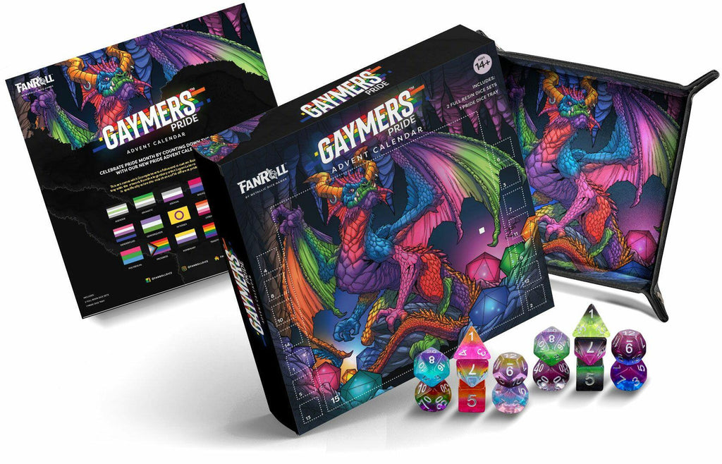 - FanRoll Pride advent calendars are a countdown to Pride month and come with 2 complete sets of dice and custom Rainbow Dragon artwork from the legendary comic artist Logan Lubera. Each die in the set is specifically colored to match one of 14 different pride flag colors.