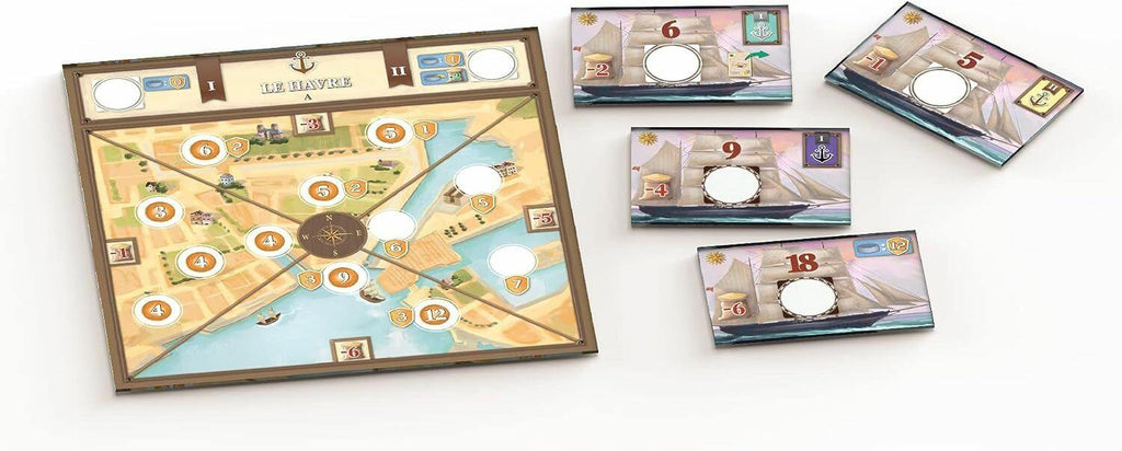 •STRATEGY BOARD GAME: The player board features a new type of worker, farmers, and different paths await on the game board to confront you with more choices. Will you take the road with buildings or a path past farmers? Maybe you'll have the chance to use your cows to help farmers. Add grain to your income used for boat and city tiles.