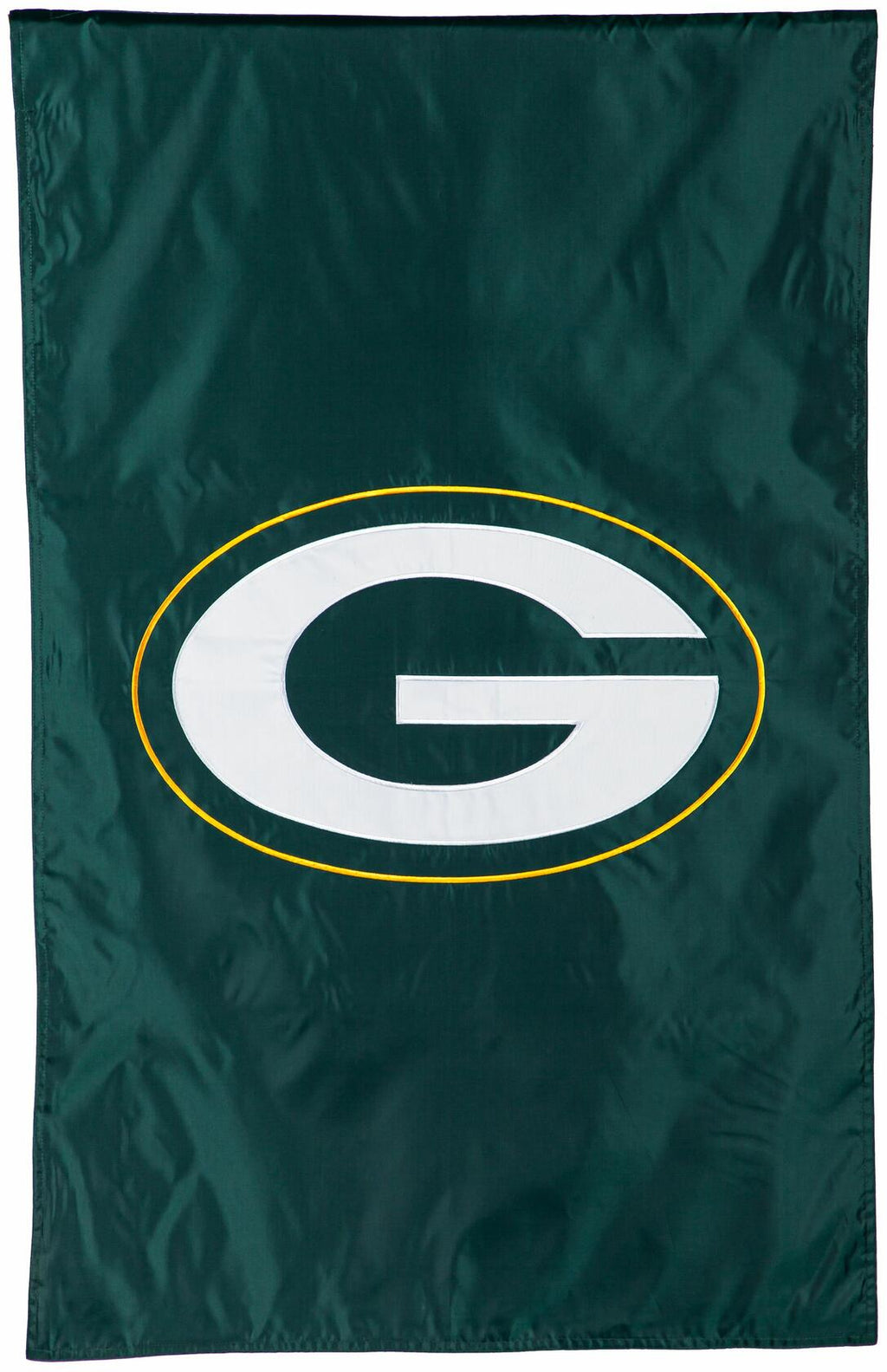 Applique flags, featuring a classic design of the team logo, are made from nylon fabric with tight, detailed machine stitching. Double-sided so it reads correctly on both sides, Poly bag with header card packaging. House flag is approximately 22" x 44"