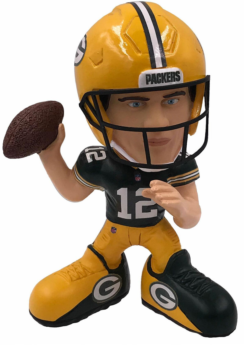 You're always looking for the next piece of Green Bay Packers gear to pad to your collection with. Make this FOCO Aaron Rodgers Showstomperz Player bobblehead a focal point of your collectible corner or your desk in the workplace. Thanks to the handpainted graphics and distinct look of this Green Bay Packers bobblehead everyone will know that your team and Aaron Rodgers fandom is deep-rooted.