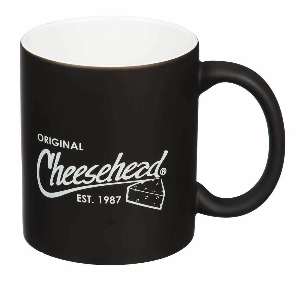 New 11 oz. coffee cups raise the bar for drinkware. When hot liquid is poured in the color and graphic will slowly change, turning this mug gold. This ceramic cup is durable and light weight. Sleek matte finish ceramic mug with a classic Cheesehead® screen printed graphic. Contrasting white inner. Dishwasher safe. Sip your morning coffee, tea or favorite beverage from your new favorite ceramic mug.