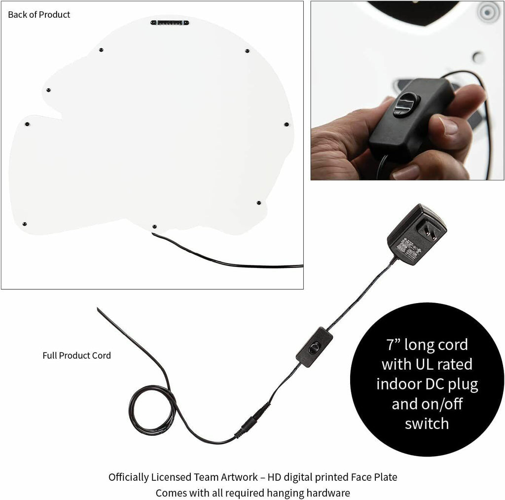Show off your team spirit with this Green Bay Packers Helmet LED Wall Decor. This LED wall decor is shaped like a football helmet and features the official team colors and logo in an HD digitally printed design. Plug-in cord is 86" long. Made of aluminum and acrylic in an ultra-thin build, this pieces is for indoor use only. It boasts a fully backlighted faceplate with full 360 degree edge lighting for an immersive glowing experience. Installation is easy, as this wall decor can be easily mounted in your office, man cave, and more. Includes wall plug-in with on/off switch, sawtooth wall hanger, drywall anchor, and screw.