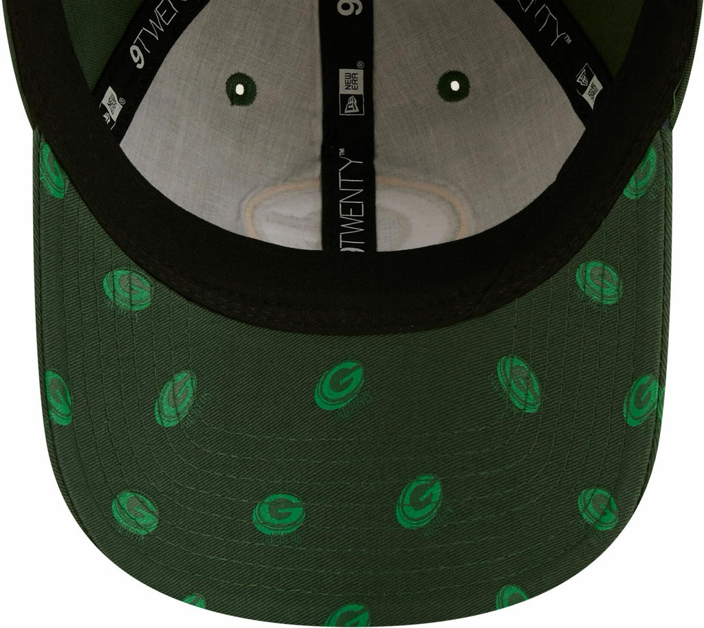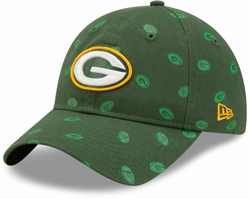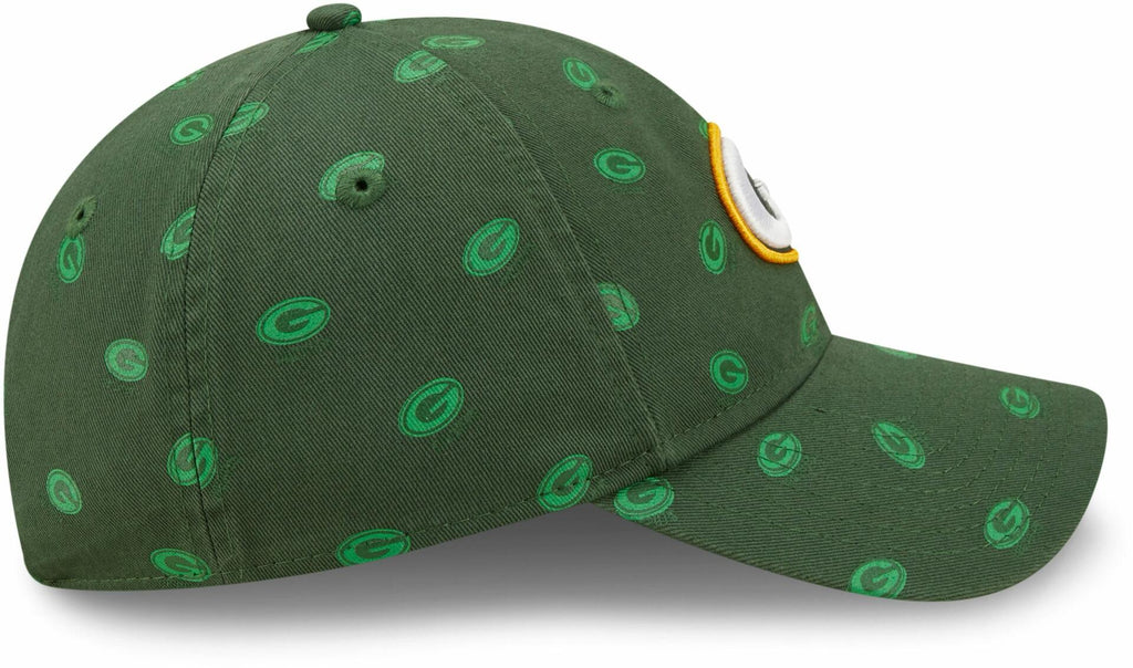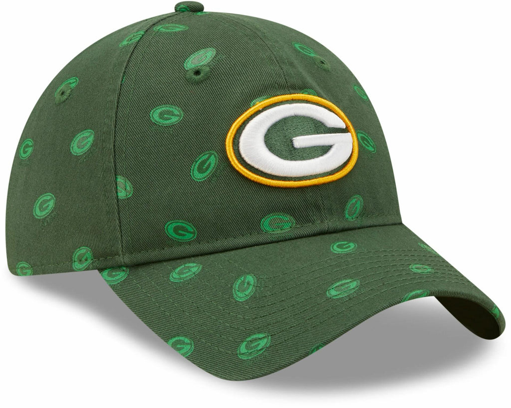 This Green Bay Packers Logo Scatter 9TWENTY Hat features an all-over print team logo with an embroidered team logo on the front panels. Adjustable strapback, one size fits most (women).
