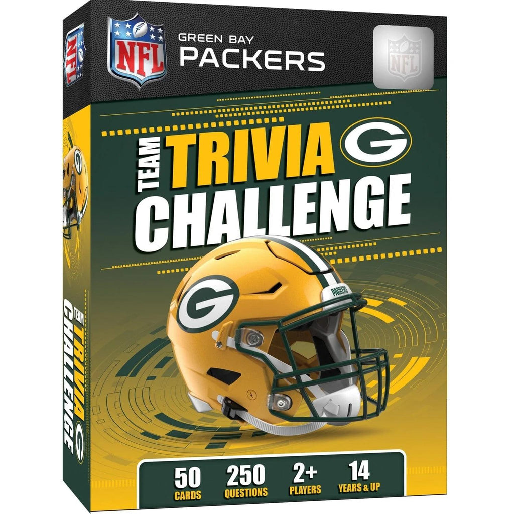 Do you think you know the Green Bay Packers better than anyone else? Here's your chance to prove it with the Green Bay Packers Trivia Challenge. Each trivia card contains 5 questions about the Green Bay Packers. If a player answers a question correctly, they get to keep the card. The player with the most cards at the end wins. Includes 50 trivia cards with 250 team-specific questions. Recommended for ages 12 and up.