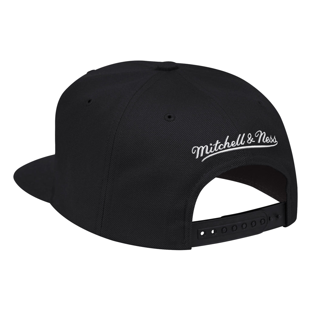 Rep your favorite pro basketball team when you wear a snapback cap from Mitchell & Ness. 100% polyester construction with high crown with raised embroidered team logo at front, contrasting grey under visor, and adjustable snapback closure at back. One size fits most.