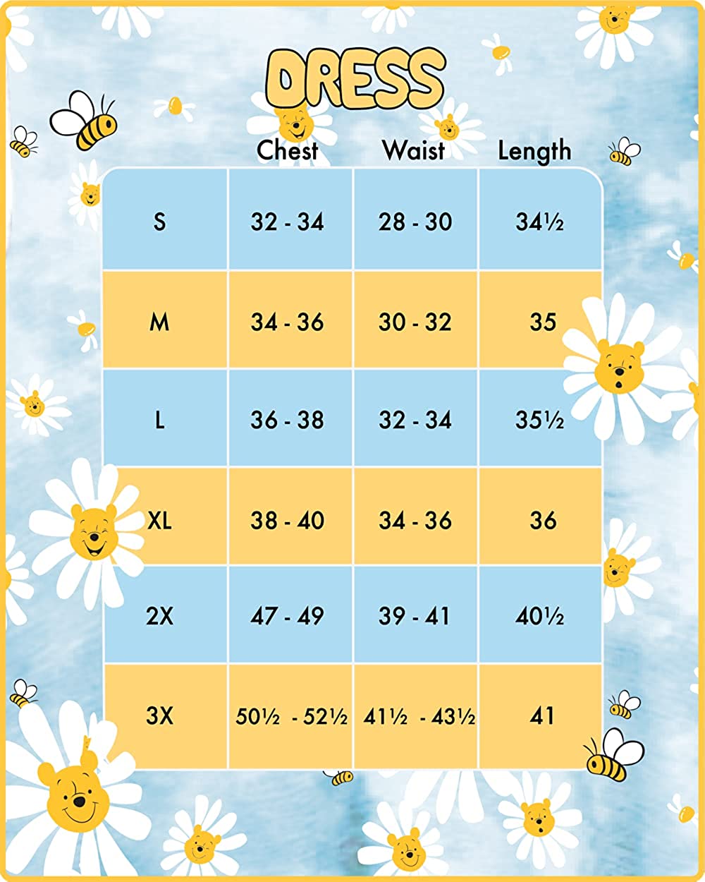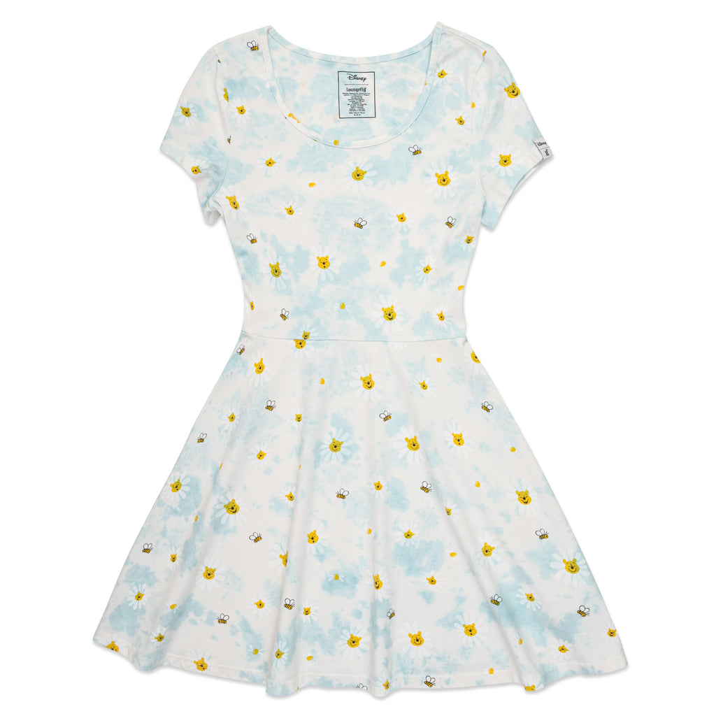 Join Winnie the Pooh in collecting daisies around the Hundred Acre Wood with the Loungefly Disney Winnie the Pooh Daisy Skater Dress. This dress is slightly stretchy and doesn’t have sewn in labels, making it a comfy adventuring outfit. The Loungefly Disney Winnie the Pooh Daisy Skater Dress is made of jersey (95% cotton, 5% polyester) and features: all-over-print, and tie dye design. Please note: This is a special hand dip due and tie dye process.