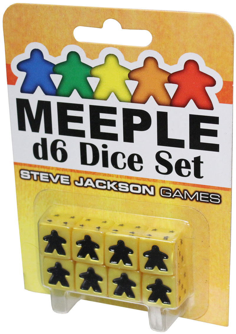 With a big meeple replacing the one pip, and little debossed meeplies on all the other sides, the Meeple d6 Dice Set blurs the lines between meeples and dice. For use with any game that requires standard six-sided dice.