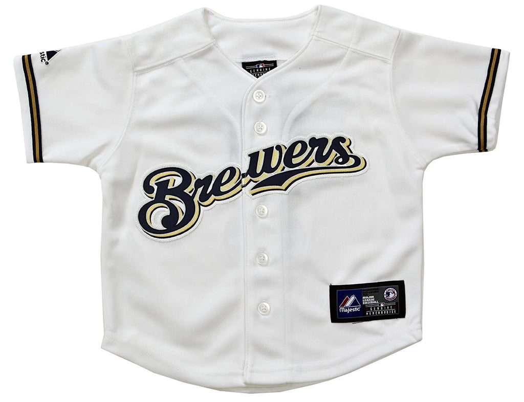 Designed to look like the classic Brewers jersey, this jersey is sized just for younger fans! 100% polyester button-down jersey features heavy duty embroidered designs on the front to look like the real thing! Youth sizes 8 - 20.
