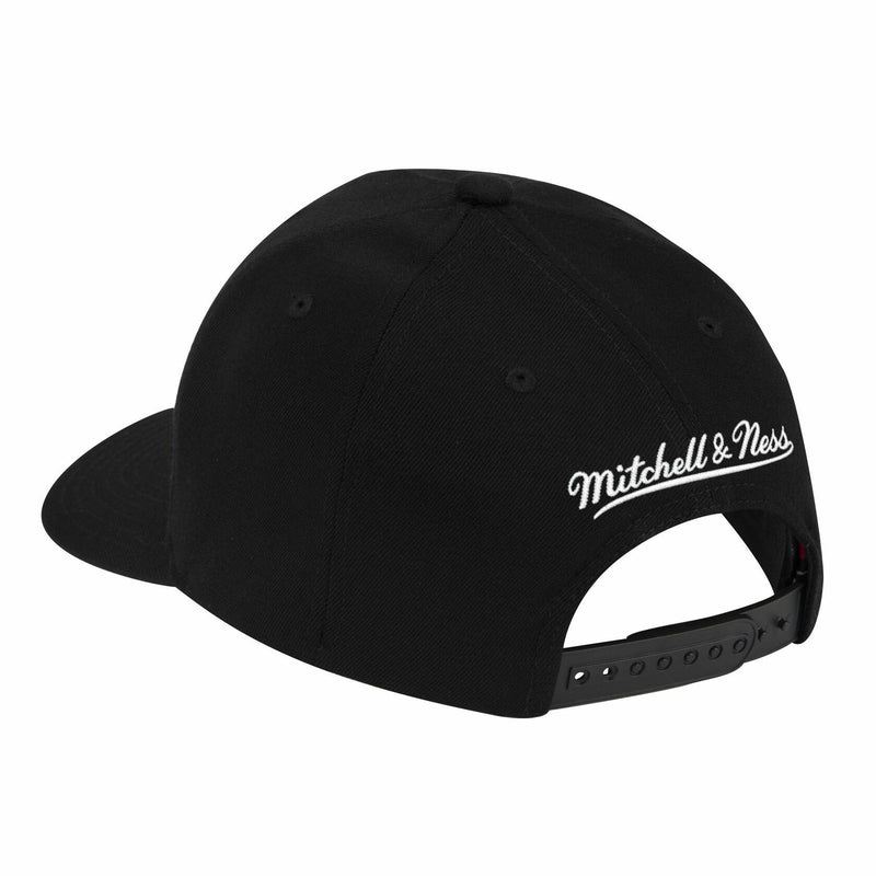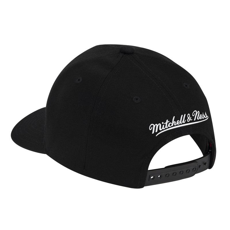 Officially licensed pre-curved snapback by Mitchell & Ness. This 87% acrylic/10% wool/3% spandex adjustable cap features a wool blend crown & top visor with a satin undervisor and stretch sweatband. With a rubber weld front logo, this snapback hat fits nearly all shapes and sizes! One size fits most.