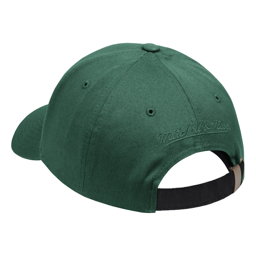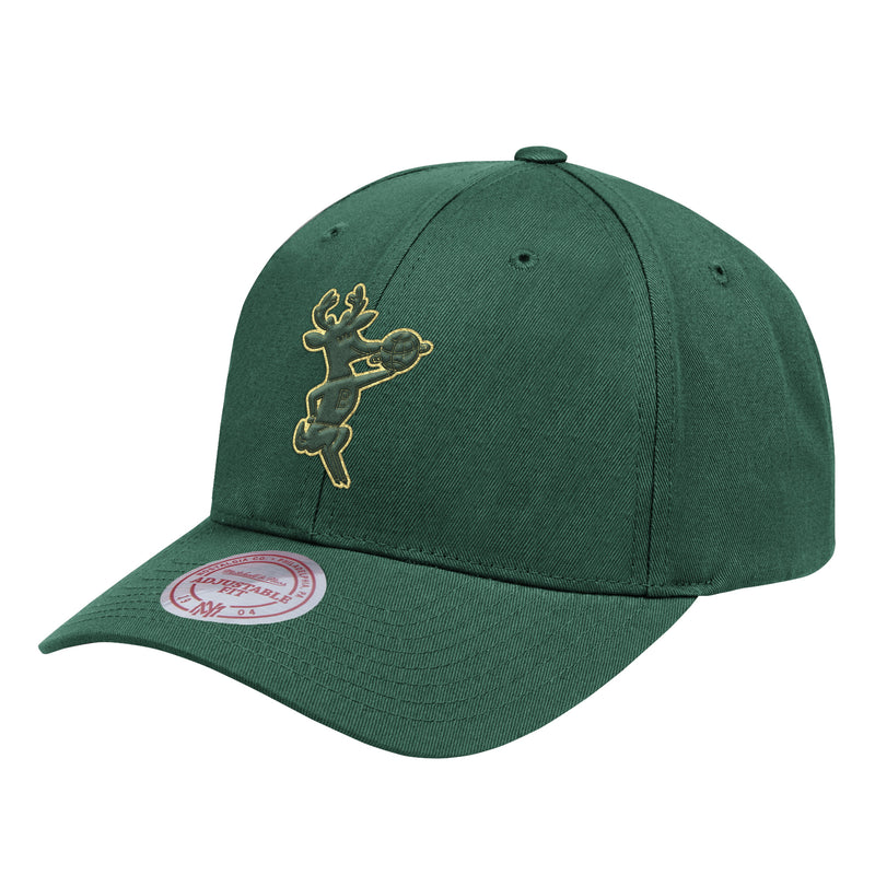 Throwback style with a pop of gold. This Mitchell & Ness Milwaukee Bucks hat features an embroidered Hardwood Classics logo with gold outline. The adjustable 'strapback' clasp ensures a comfortable fit.