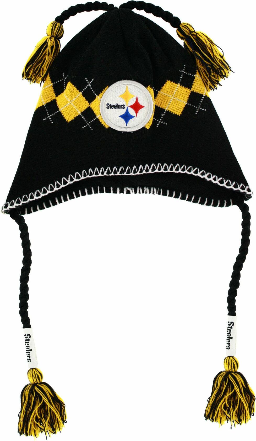 Show your team pride by wearing a fun team logo beanie! This knit cap features an argyle pattern in team colors and a prominent embroidered team logo on the front with a New Era flag logo embroidered on the side. A pair of tassels in team colors on top completes the look. 100% acrylic. One size fits most, ages 14 and up. Officially licensed.
