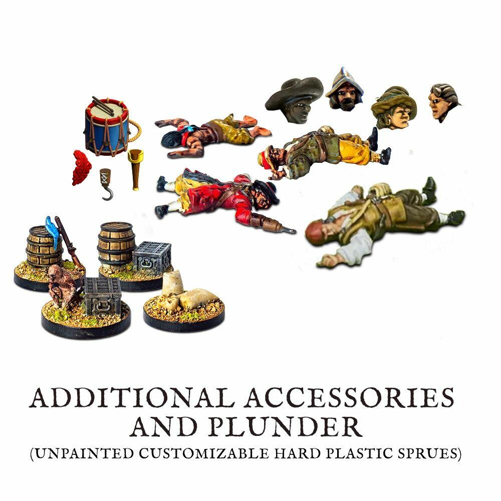 Port Royal is a campaign based, tactical, small-scale warband-sized skirmish wargame that is easy and fast to learn and play. Loosely based on the historical events following the 1692 earthquake that devastated the island of Jamaica. In Port Royal, players take control of small companies of pirates, privateers, Native Americans, African Maroons, or local government forces as they battle against opponents for their share of the plunder that litters the ruins of the place. Players will gain loot and experience between games while building infamy and growing in their piratical expertise. But take heed! The ruins are fraught with dangers! Falling buildings, wild animals, desperate civilians, and opposing companies can bring a quick end to members of your company.