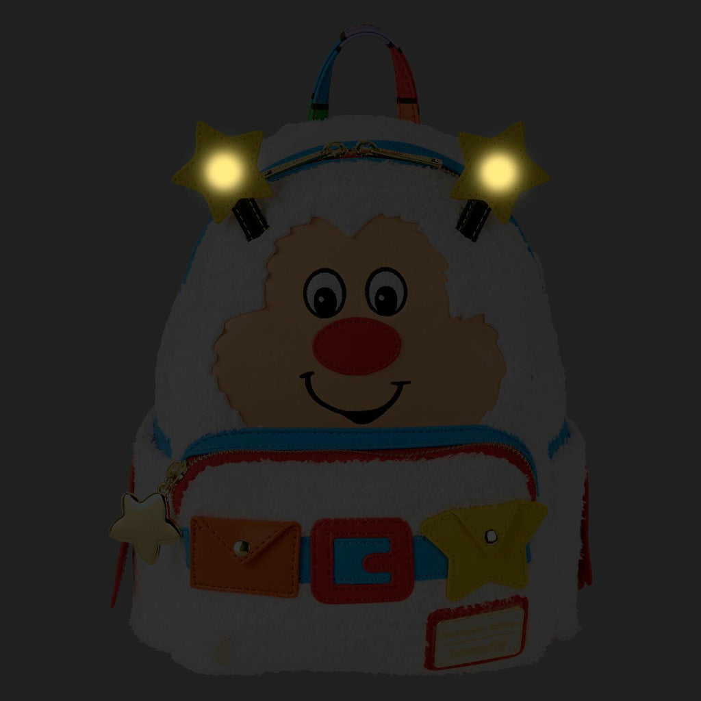 Calling all Rainbow Brite fans! How cute is this Twink mini backpack?! He comes to life in plush detail with movable arms and light-up star antennae! Find details of his belt along the front pocket. Turn the bag around to find rainbow straps and an image of Rainbow Brite and Twink hanging out together on the back! Make your days brighter and more colorful with this mini backpack!
