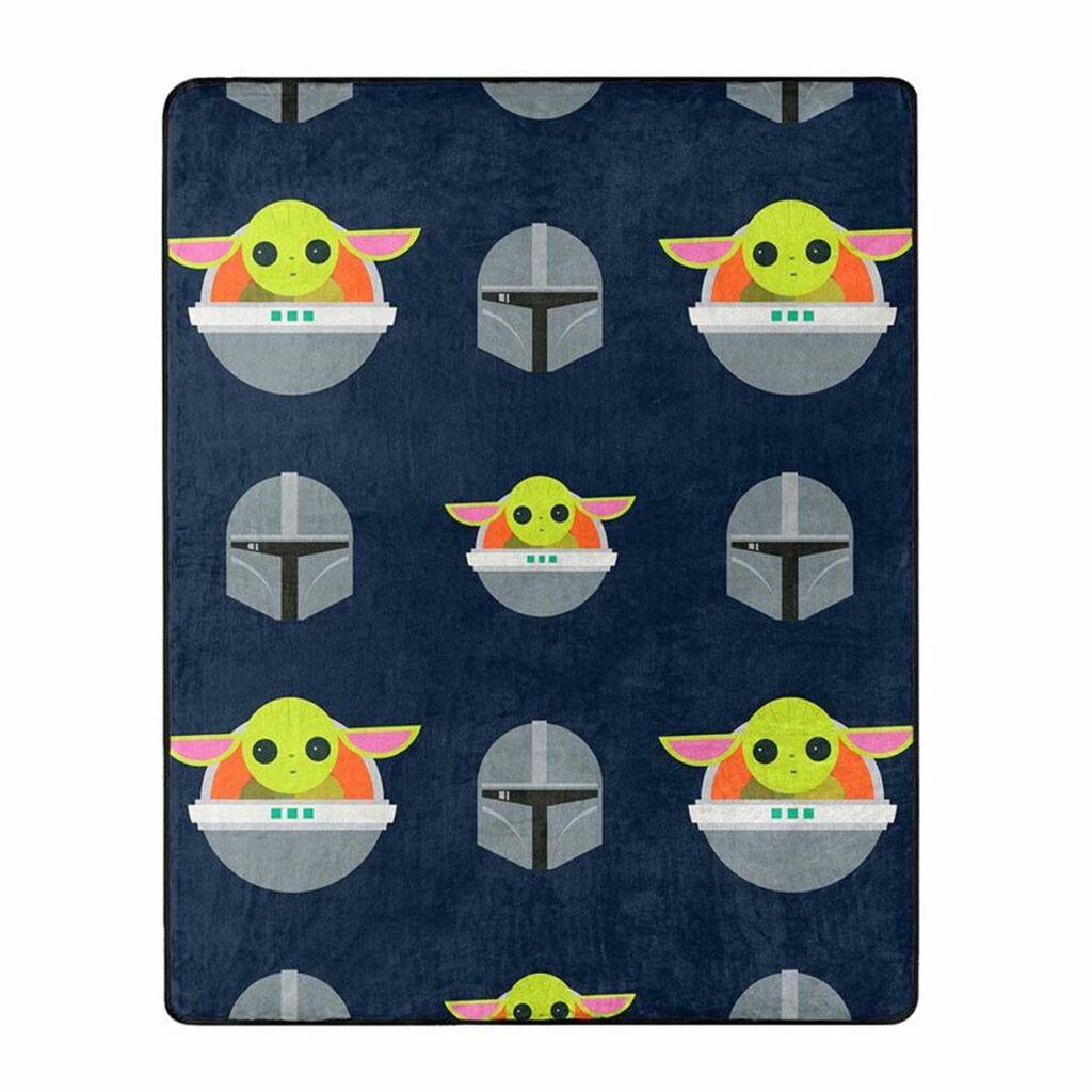 •Throw features a repeating print of The Child on a navy blue background; character pillow looks just like The Child.