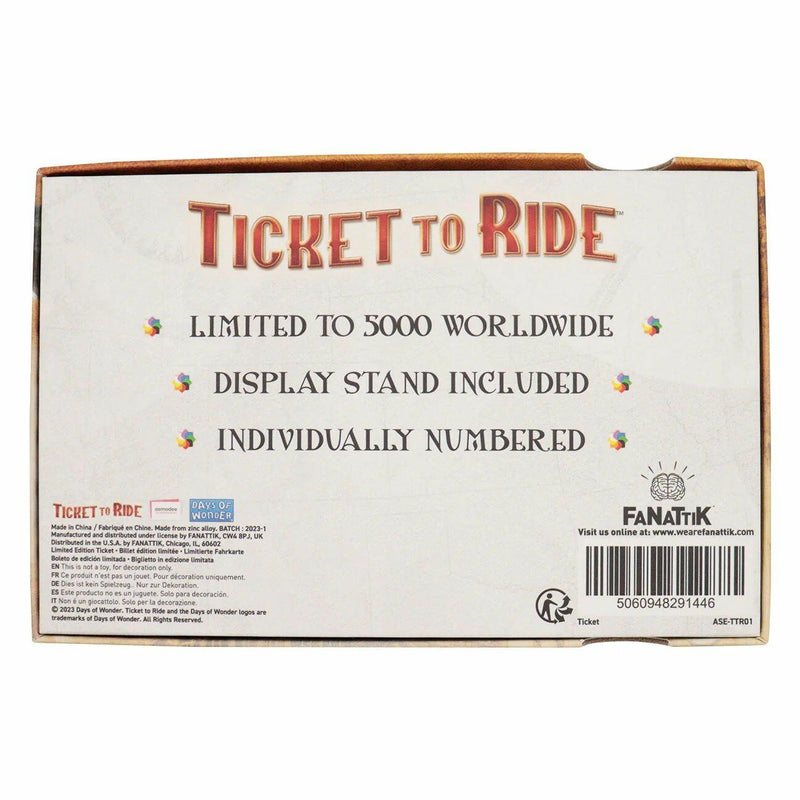 This is your very own Ticket to Ride! Grab this collectible ticket and proudly display one of the longest Routes in the game... Seattle to New York. This officially licensed ticket is limited to 5,000 worldwide with each item being individually numbered. A display stand is included within the presentation box.