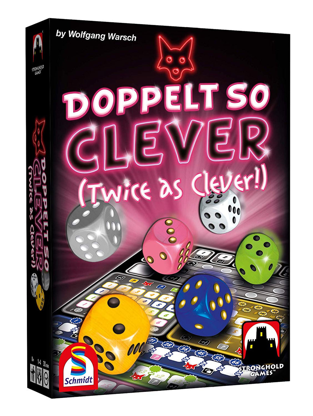 Twice As Clever (aka Doppelt So Clever) follows the model of acclaimed game 'That's Pretty Clever (Ganz Schn Clever'). Each turn the active player rolls six dice, chooses one of them to mark off a space on their scoring grid, places any dice with lower numbers on the side, then re-rolls any remaining dice. The white die is a joker and can be used as any one of the other five colors. After the active player chooses at most three dice, then the other players choose one of the set-aside dice for use on their scoring sheet. This game was designed by award-winning game designer, Wolfgang Warsch!