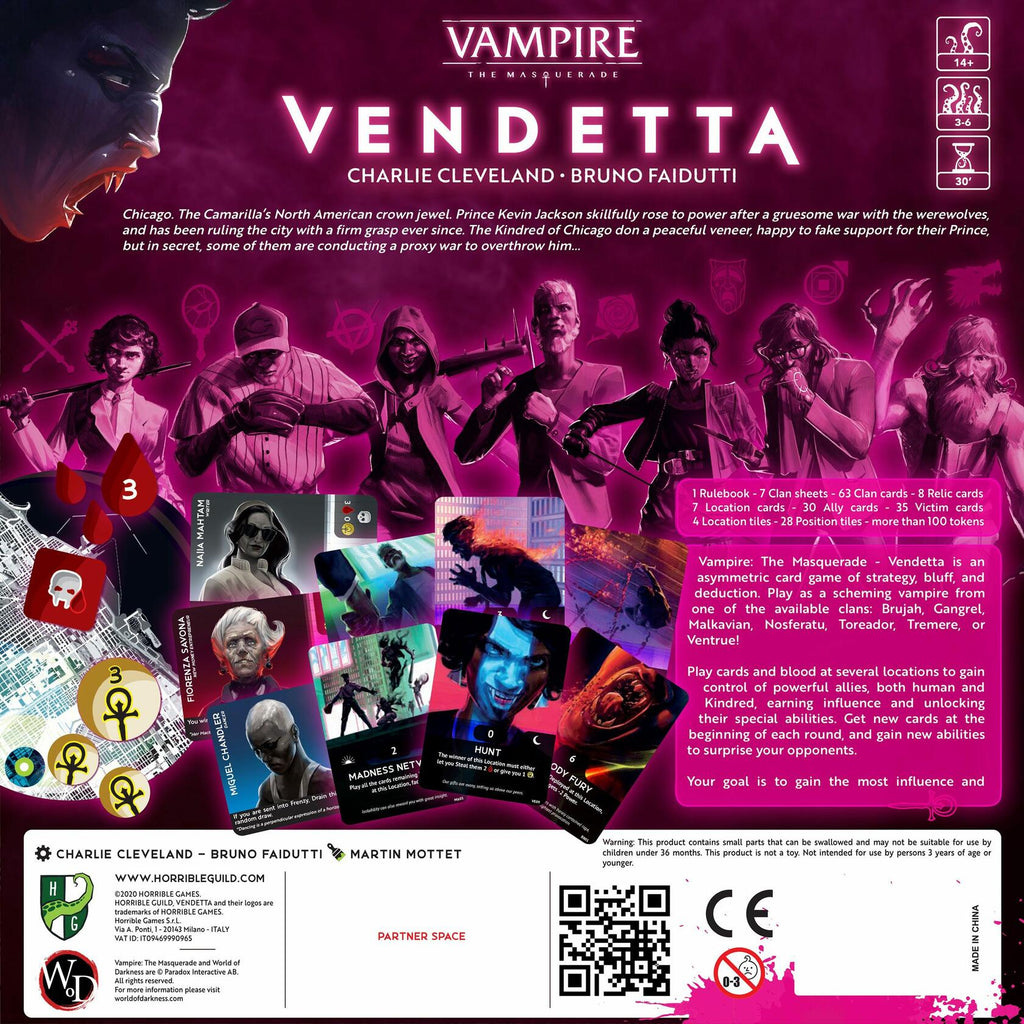 Scheme and fight for influence and power as immortal vampires! Build your hand, play cards and blood to earn the control of influential humans and make them your servants; your goal is to gain the most influence over three ages.