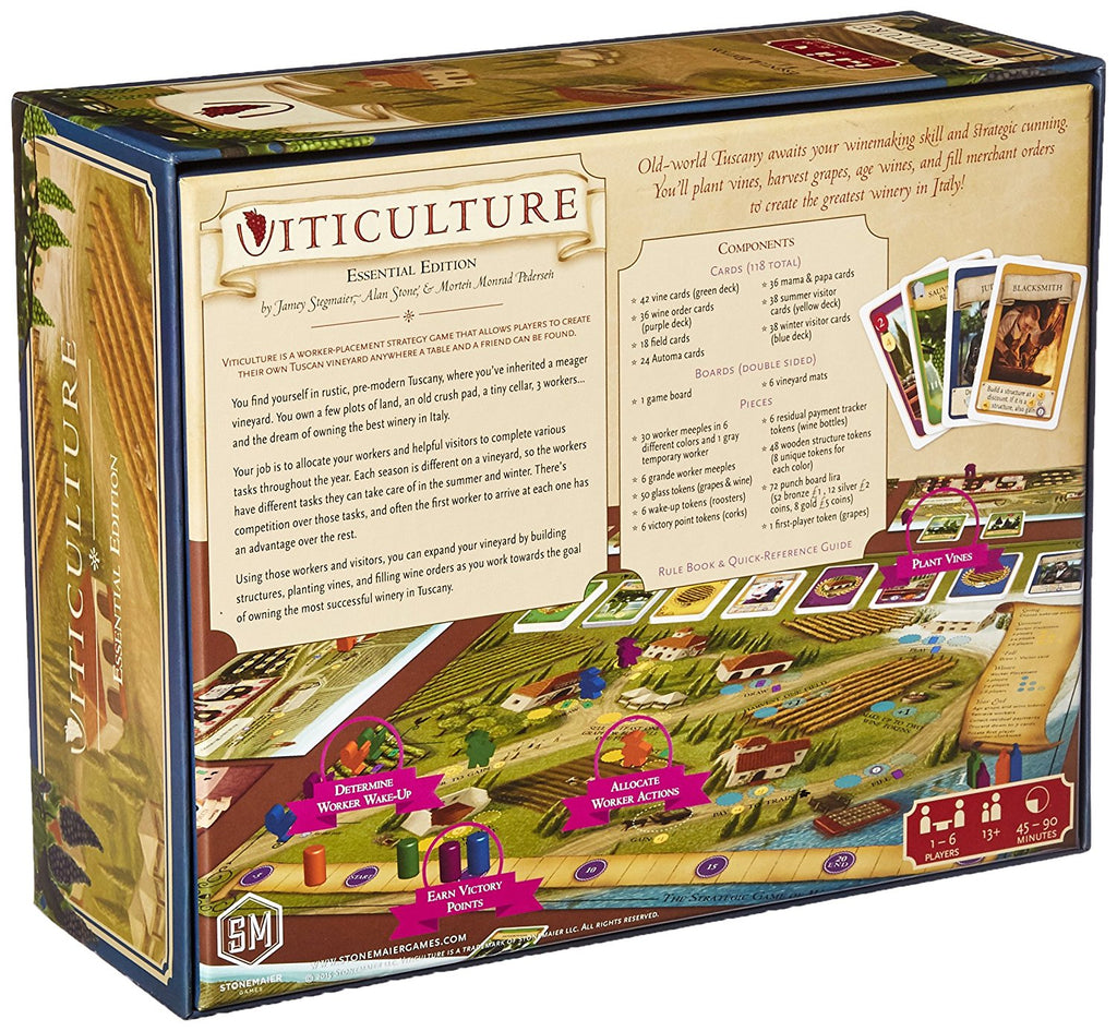 This Essential Edition of Viticulture includes the Second Edition of the worker-placement game set in the foothills of Tuscany, along with elements from the original Tuscany expansion pack, hand-picked by famed designer Uwe Rosenberg.